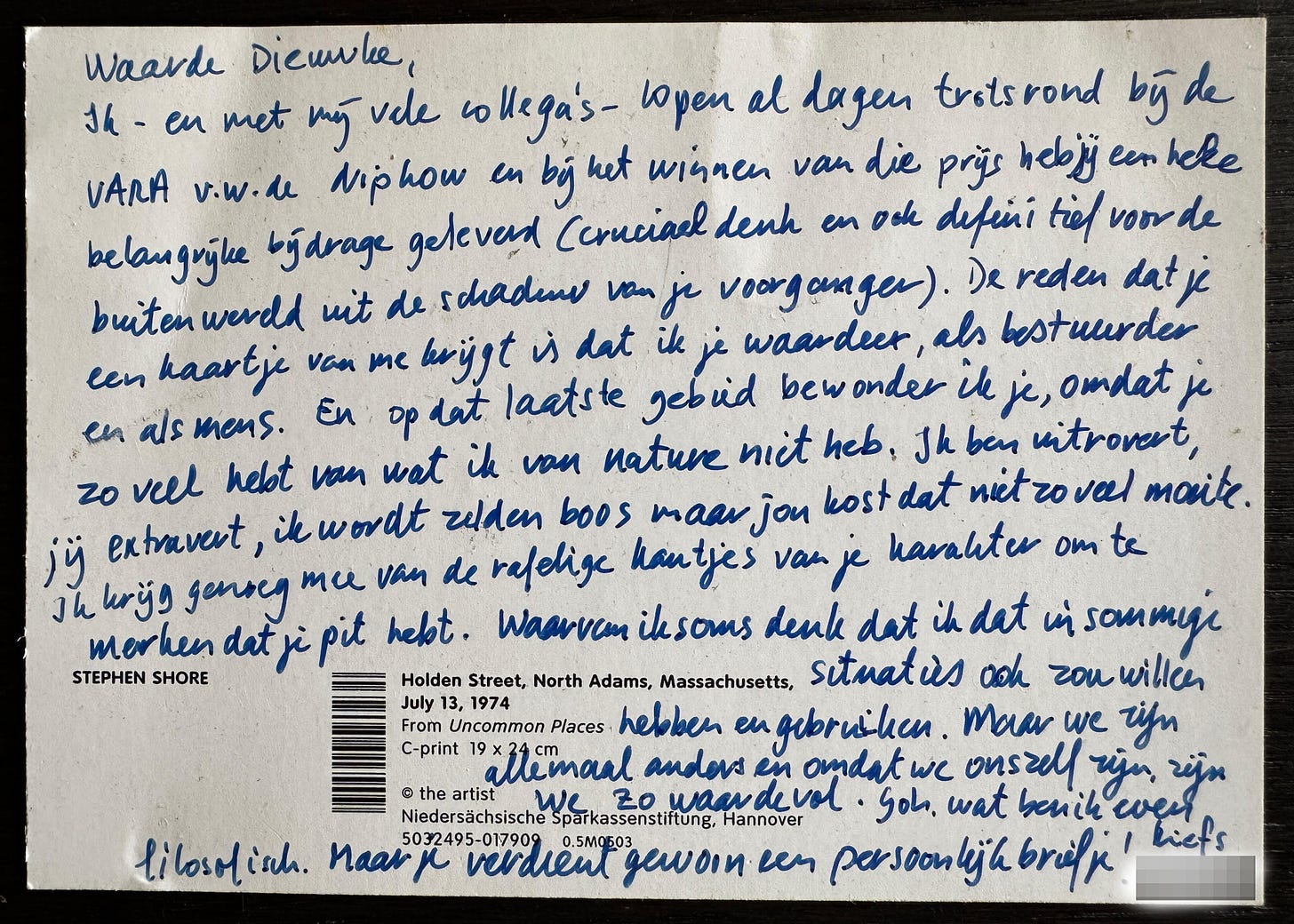 Een jaar eerder, na het winnen van de Zilveren Nipkowschijf in mei 2011, had de financieel directeur me een kaartje gestuurd. De tekst begon professioneel — hij feliciteerde me met de prijs— maar na een paar regels werd de toon zeer persoonlijk. Hij schreef dat hij me waardeerde ‘als bestuurder en als mens’, en vervolgde: ‘En op dat laatste gebied bewonder ik je, omdat je zo veel hebt van wat ik van nature niet heb.’ Hij vergeleek onze karakters, schreef over mijn ‘rafelige kantjes’ en ‘pit’ en eindigde met: ‘Maar je verdient gewoon een persoonlijk briefje!’ en ‘Liefs’.